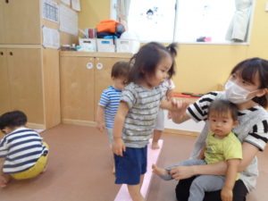 歩けるようになったお友だちは、手を離して嬉しそうに歩いて見せてくれました❤