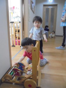 手押し車やボールで遊びました✨廊下をたくさん歩き、運動不足解消ですね!
