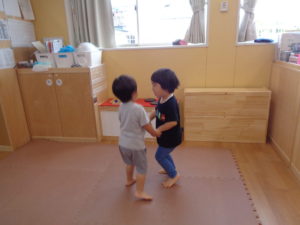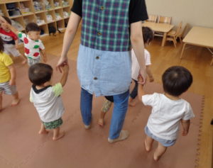 ピアノの曲に合わせて先生と一緒に触れ合い遊びをしたり、手を繋いで歩きましたよ🎵