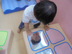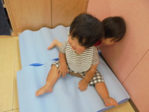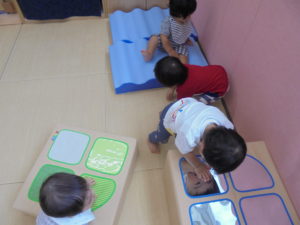 お部屋で、ガタガタマットや、ピカピカマットで遊びました