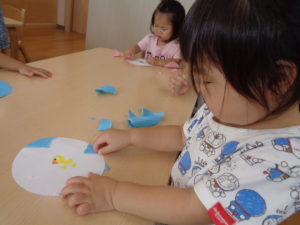 紙を細く切ったり、細かく切ったり、色んな形に切るの、楽しいね