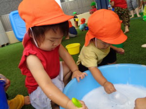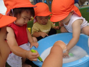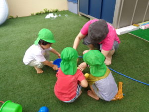 お外でお水あそび