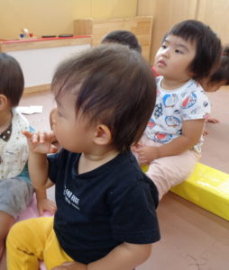 椅子からおりても先生のお話を上手に聞けてるね
