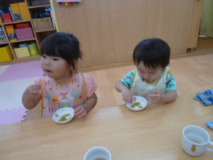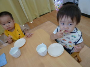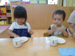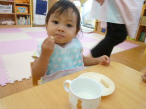 少しずつおやつの前の手遊びを覚えてきてとても可愛く行っています。