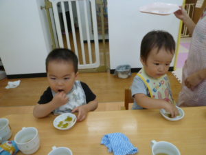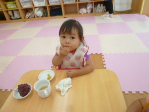 今日のフルーツはぶどうだったので子ども達は嬉しそうに食べていました。