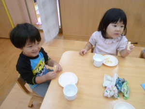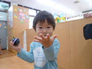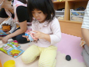 最近先生の真似をして寝る前の絵本を読んでいる子どもがいます。
