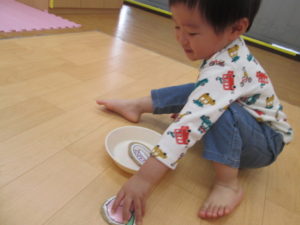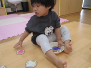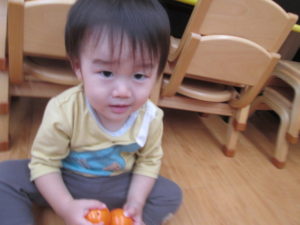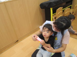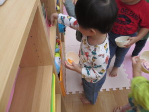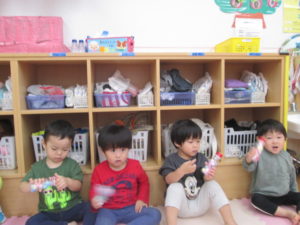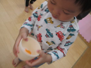 朝の会が終わったらおやつの時間です。