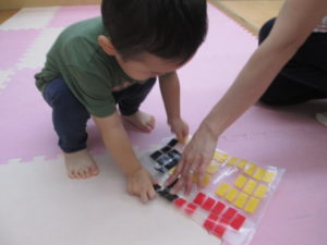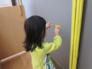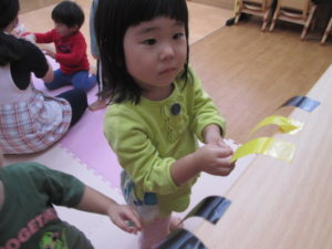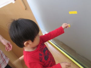 その後、カラーテープを使ってお部屋を飾りつけしました。