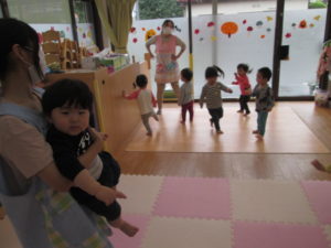室内で元気いっぱい遊びました。
