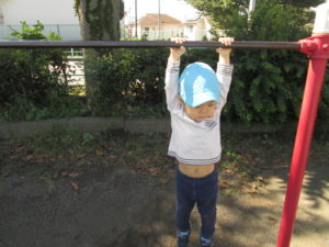 鉄棒にもぶら下がりました。
