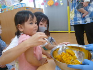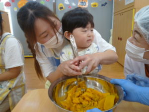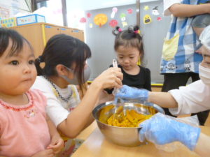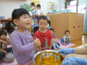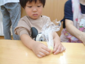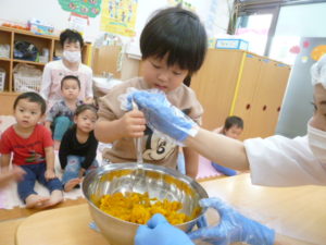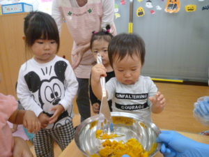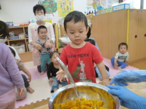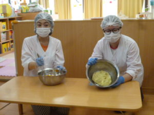 つぶす作業のあとはそら組さんがさつまいもをこねていきました。