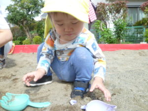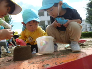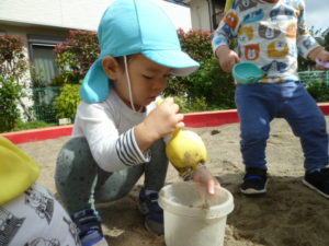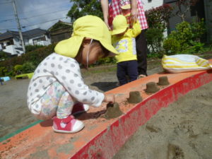 砂場遊びが好きな子ども達は集中して遊んでいました。