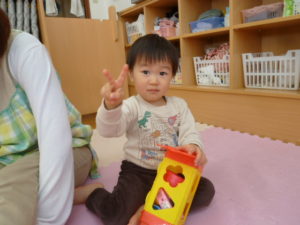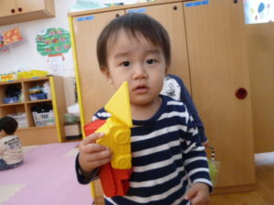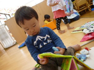 ブロックや絵本など、自分の好きな物を見つけて、遊んでいます☺