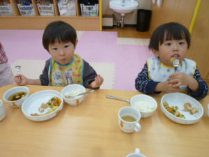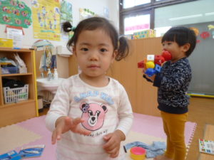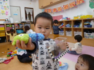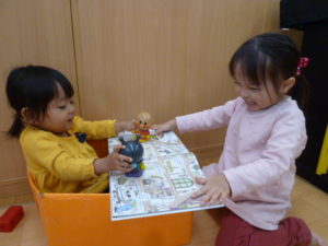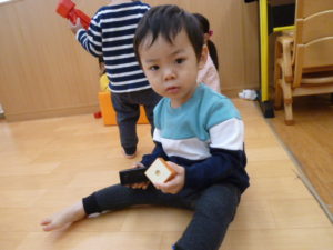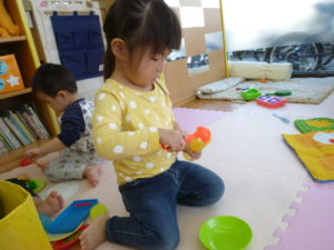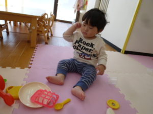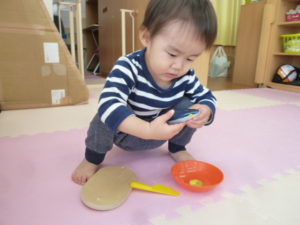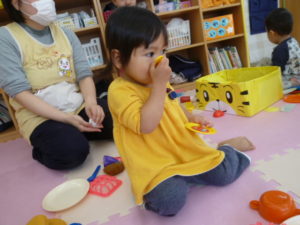 園に帰って来てから、お部屋でおままごとをして遊んでいる様子です!