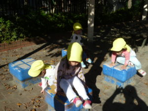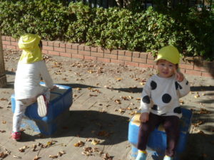 黄色や赤色に色づいた葉っぱを拾ったり、お砂で遊んだり暖かい日差しの中で思い思いに遊ぶことが出来ました。