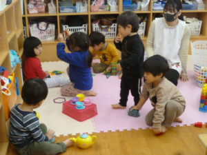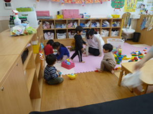 そら組さんはお部屋で遊んだ後、制作をしました。