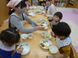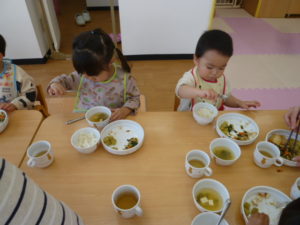 カレイは焼いてもやわらかく、パサつきが少ないので食べやすかったようです。煮浸しや甘煮もよく食べ、完食する子が多かったです。