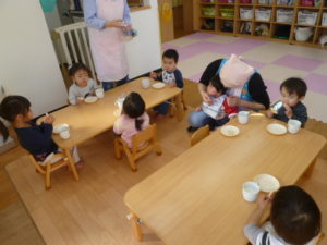 その前に朝おやつを食べます。