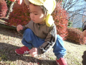 赤い実を拾って手の中に集めたり、