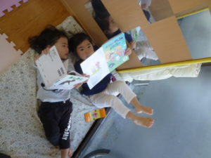 おやすみ前に絵本を読みます。