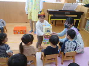みんなに今日は何の日かと問いかけると大きな声でお友達の名前を伝えてくれました。