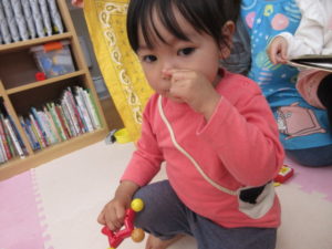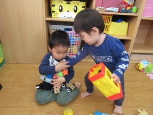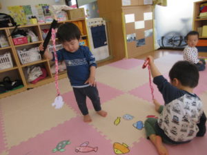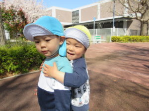 ひまわり組さんはそら組さんと手を繋ぐと嬉しそうに笑っていました。