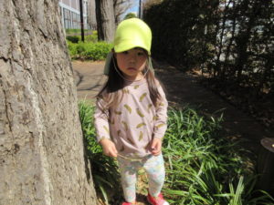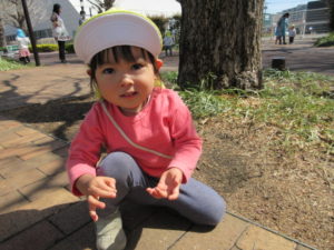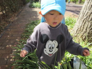 並木道に付き走ったりアリを見つけて喜んでいました。
