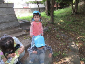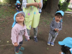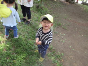 今日は良いお天気で、お部屋で遊んでおやつを食べた後、みんなでお散歩に出かけました。