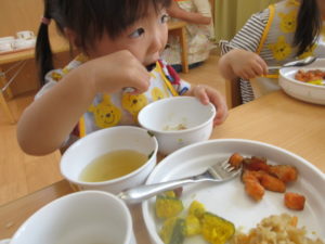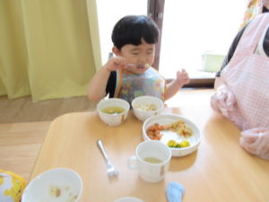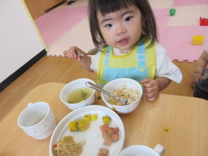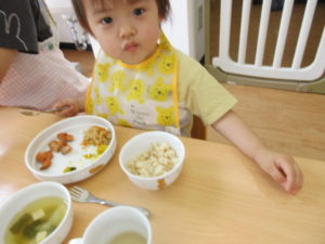 いつもの白いご飯ではないので、苦手な子もいたので食べ具合には差が出ました。