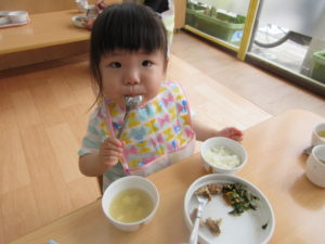 あっという間におかずを食べきってしまい、残った白いご飯に苦戦している子もいましたが、最後まで残さずよく食べていました。