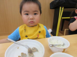 今日のおかずは食べやすかったようであっという間に完食する子が多かったです。