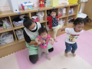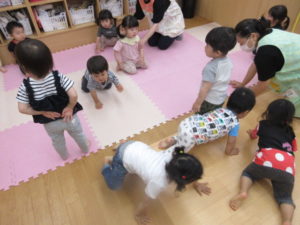 そら組さんはお家のようにして入口で「開けて~。」と言って出入りを楽しんでいました。