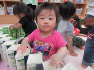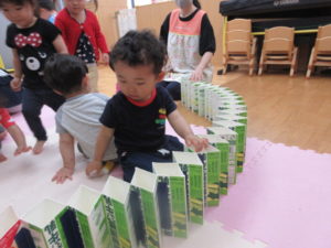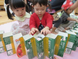 その後は、牛乳パックの玩具を使って遊びました。