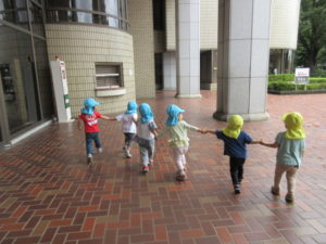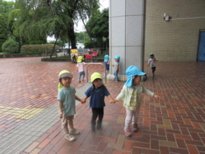 みんなで手をつないで歩いたりして、楽しく遊びました☺