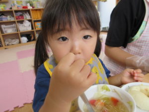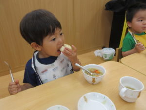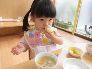 ふわふわのパンは人気で、みんなぺろりと食べていました🍞 (早)