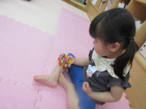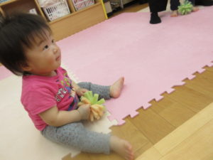 フワフワのスポンジのボールは 持ちながらゆらゆら揺らした後に ぽーんと上に投げるのが楽しかったね😊