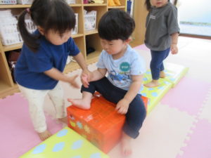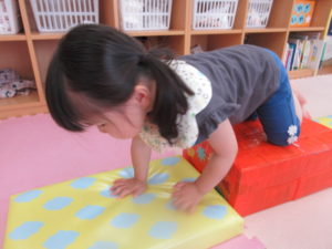 その後は お部屋に戻ってトンネルや台で遊びました。