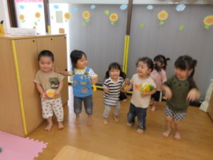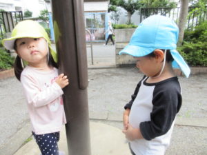 今日はお部屋で遊んだ後、みんなでお散歩に行きました。