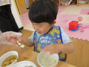 水分補給をしたら、園に戻ってお昼ごはんです。