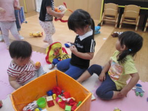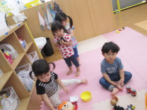 室内ではブロックやおままごとや風船、いろいろな玩具で
