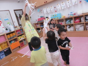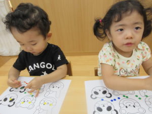 シール貼りをしたり、お絵描きをしたり、ダンスを踊ったり、とても楽しそうな子どもたち。