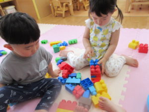 お部屋に戻りブロックで思い思いに