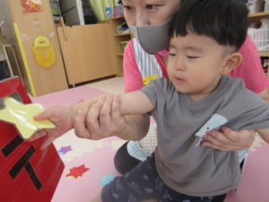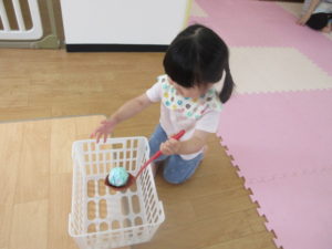 ひまわり組さんは玉入れやポストに