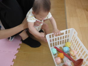 今日から保育園に0歳児のお友達が入園しました。