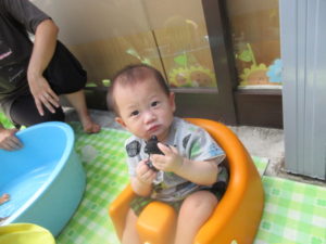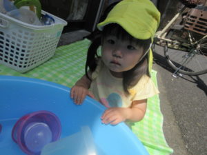 とっても暑かったので、少しの時間、お外に出て水遊びを楽しみました☺