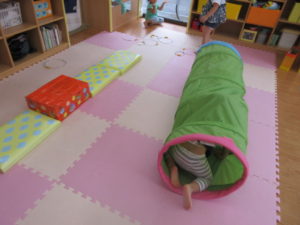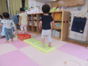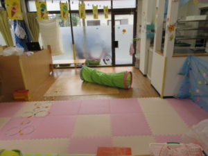 ひまわり組のお部屋を広く使ってサーキットを作りました。
