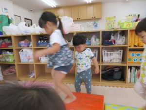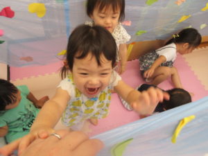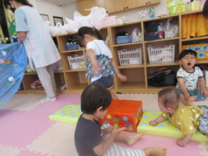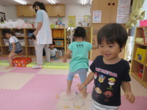 お盆休みのお友だちが多く、今日は 人数が少ないので一緒に過ごしました。