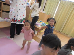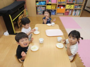 午前おやつを食べた後はみんなで体操をしました。