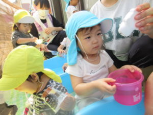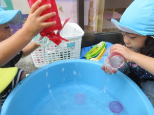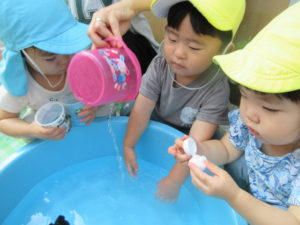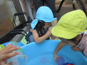 体操の後はみんなで水遊び💧