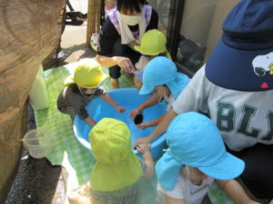 外は暑かったのでお水に触れるのが気持ちよさそうでした。